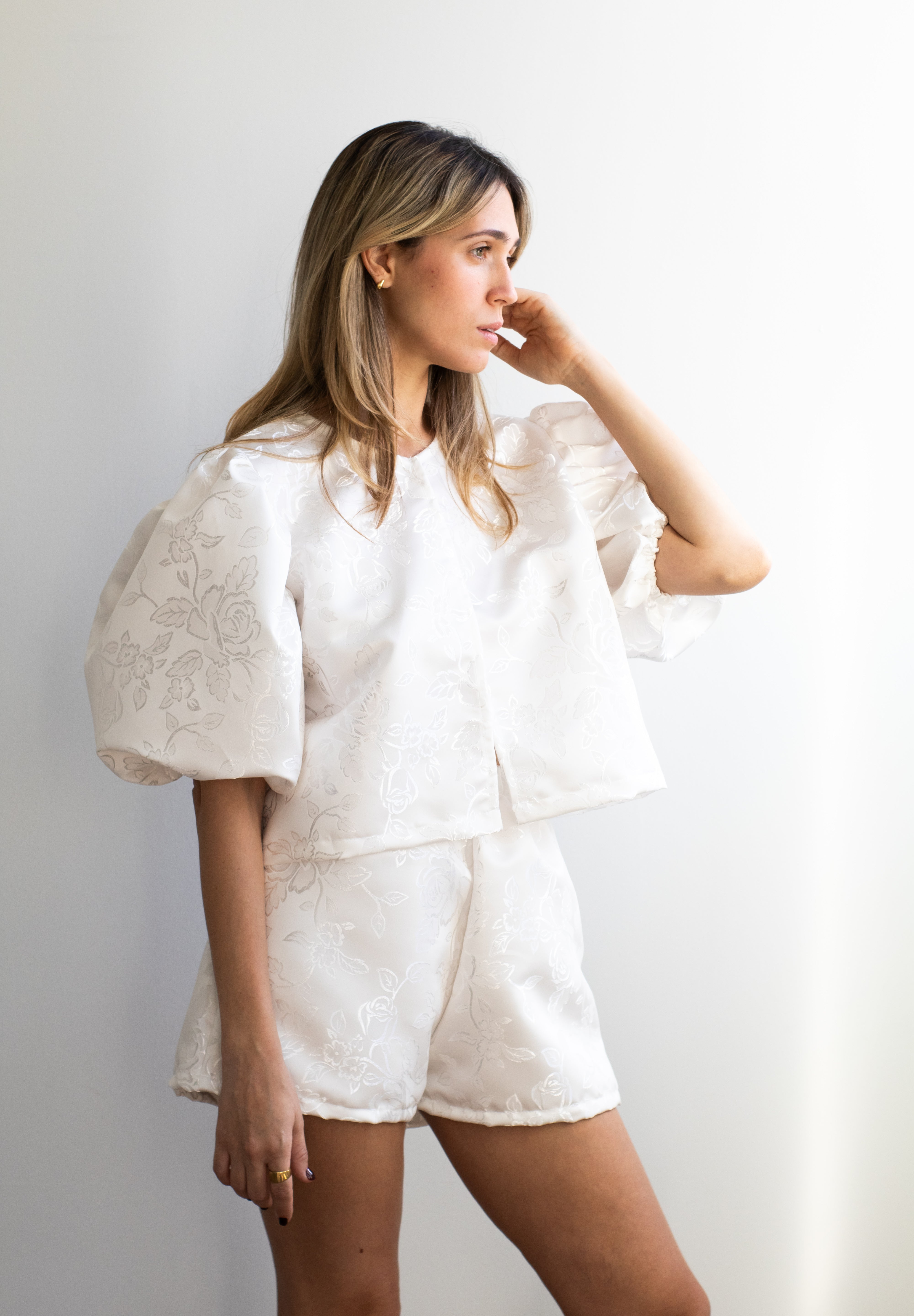 Wearing size small | loose fit | puff sleeves | Brocade Fabric