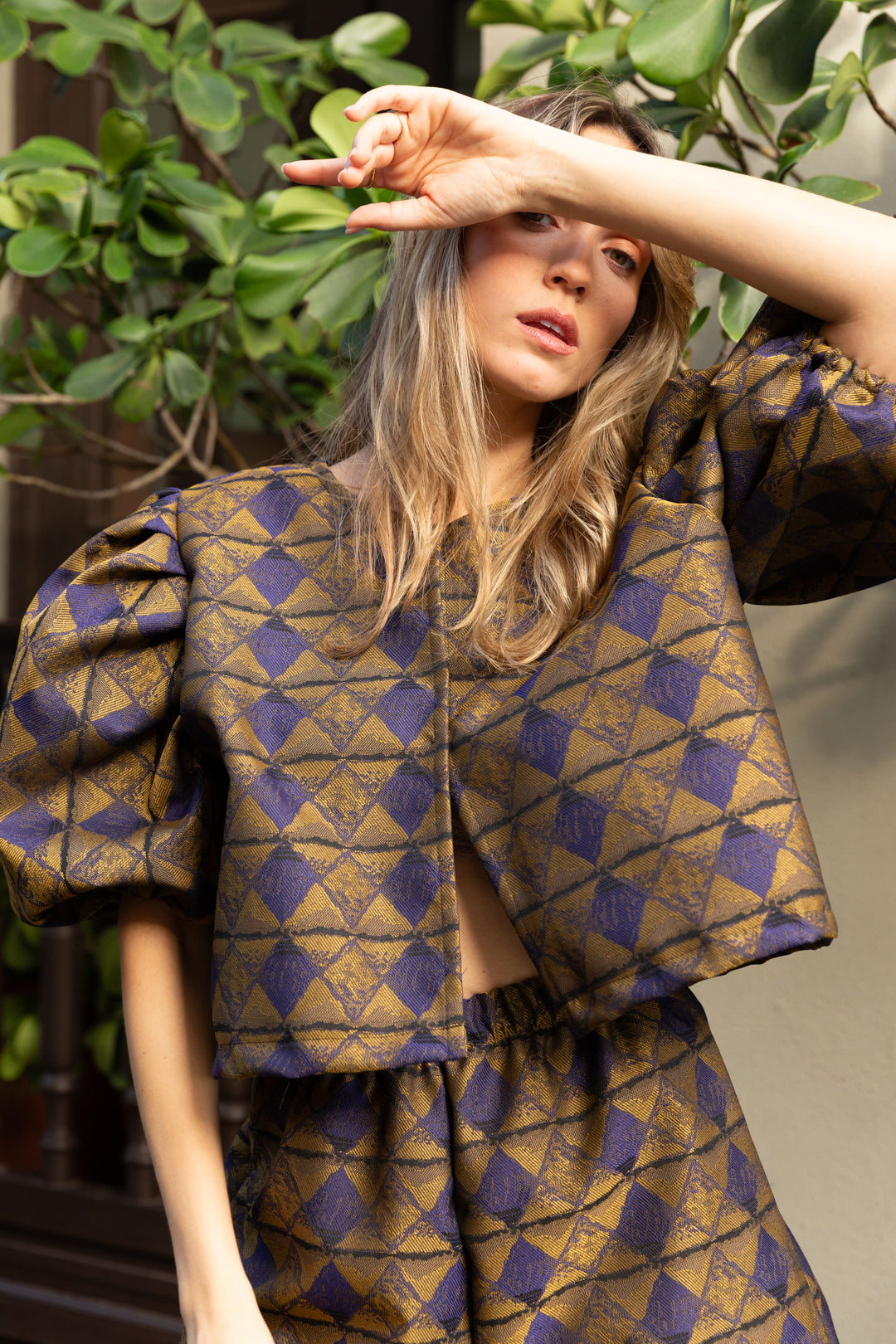 Wearing size small | loose fit | puff sleeves | Brocade Fabric